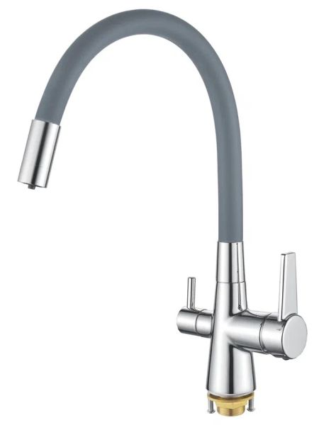 Смеситель для кухни с гибким изливом и подключением фильтра Shevanik S668, хром/серый.Управление: рычажное.Вращение излива: да.Выдвижной излив: нет.Гибкий излив: да.Высота:33,5.