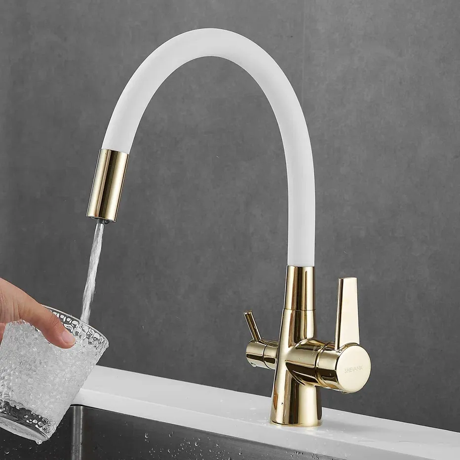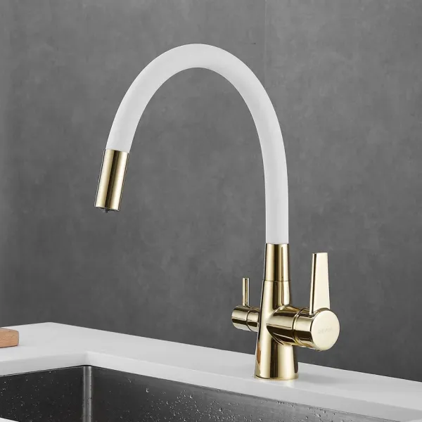 Смеситель для кухни Shevanik S668E с подключением фильтра золото/белый