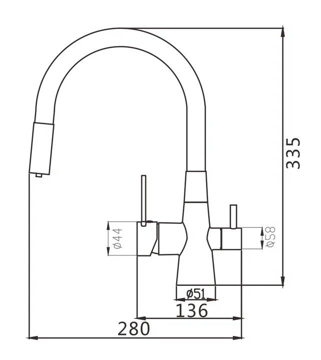 • Высота смесителя: