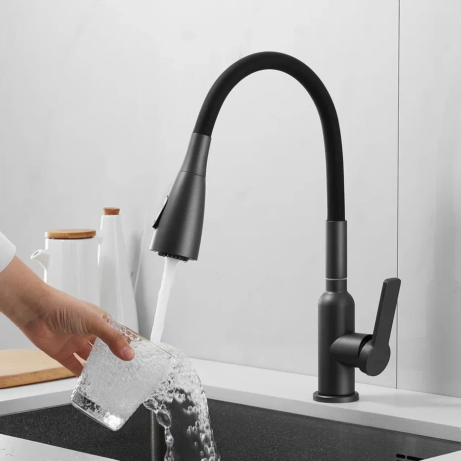 Смеситель для кухни с гибким изливом Shevanik S843T-3, оружейная сталь/черный.Управление: рычажное.Вращение излива: да.Выдвижной излив: нет.Гибкий излив: да.Высота:45.