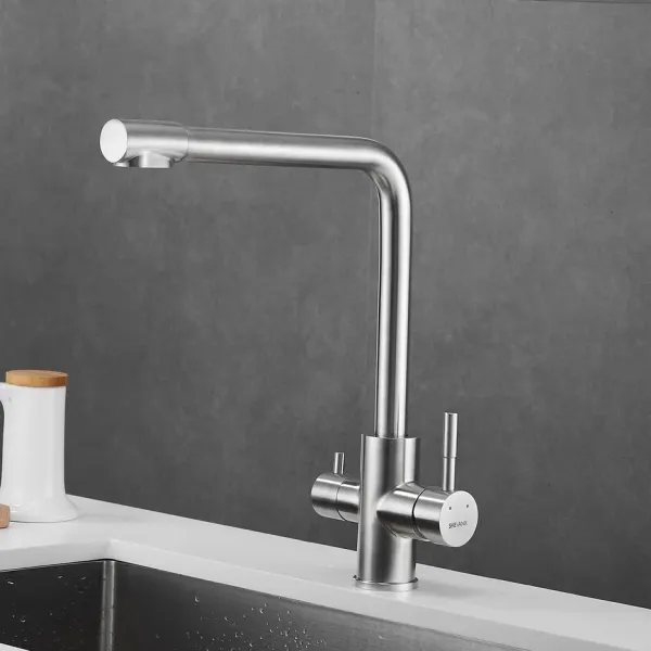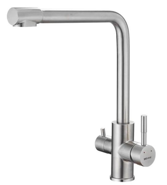 Смеситель для кухни с подключением фильтра Shevanik S868B, сатин.Управление: рычажное.Вращение излива: да.Выдвижной излив: нет.Гибкий излив: нет.Высота:33,5.