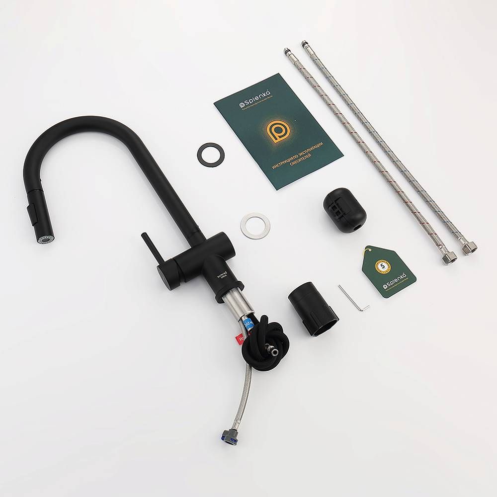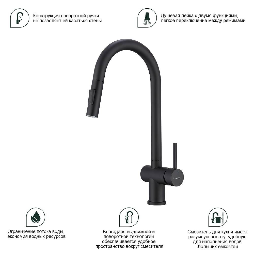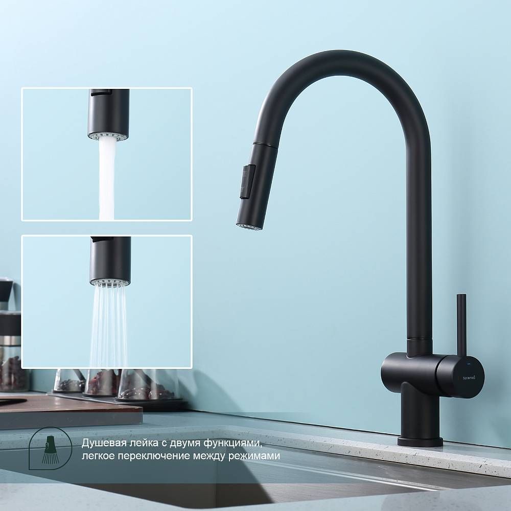 Смеситель для кухни Splenka S204.49.06 с выдвижным изливом чёрный купить
