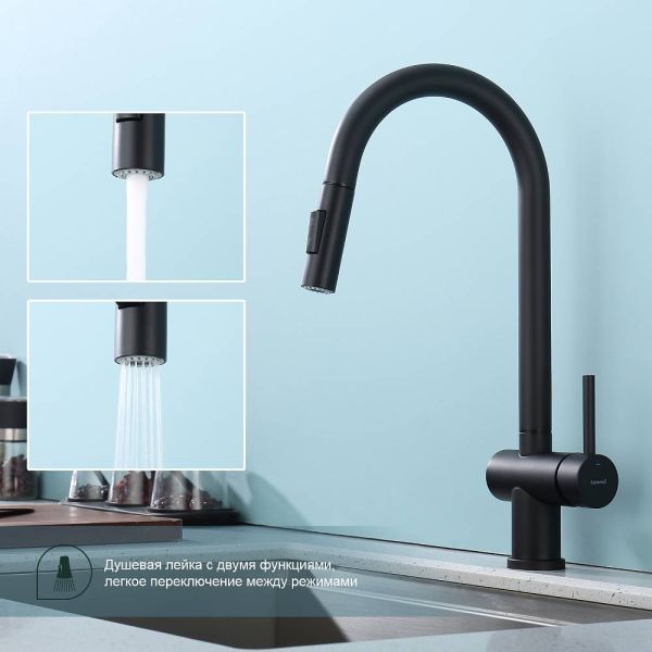 Смеситель для кухни Splenka S204.49.06 с выдвижным изливом чёрный