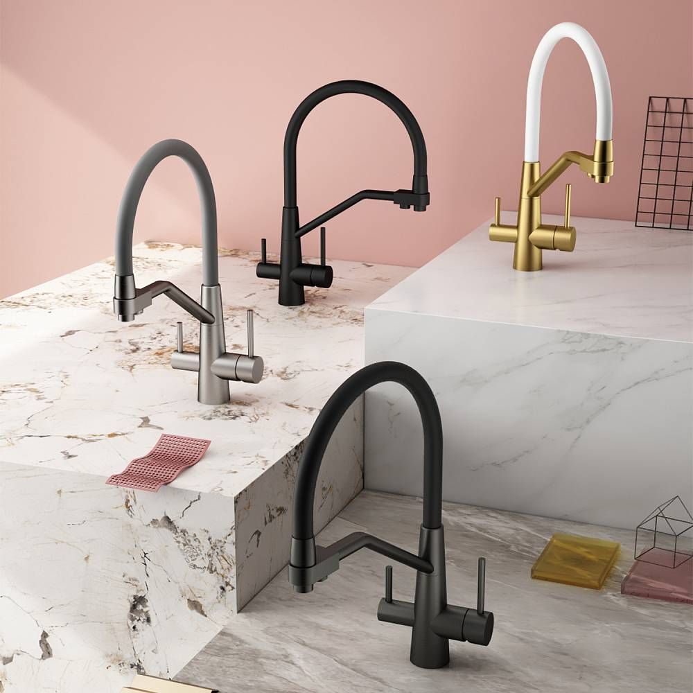 Смеситель для кухни с подключением к фильтру питьевой воды Splenka S71.62.03. Цвет: сатин золотой. Гибкая подводка 50 см идет в комплекте. Благодаря грамотно разработанной конструкции, прибор отлично справляется с регулированием температуры и напора потоков воды. Однорычажные смесители максимально удобны при эксплуатации, всего одним движением руки можно закрыть или открыть воду, имеют стильный внешний вид, а также комфортность в использовании. Гарантия 5 лет.
