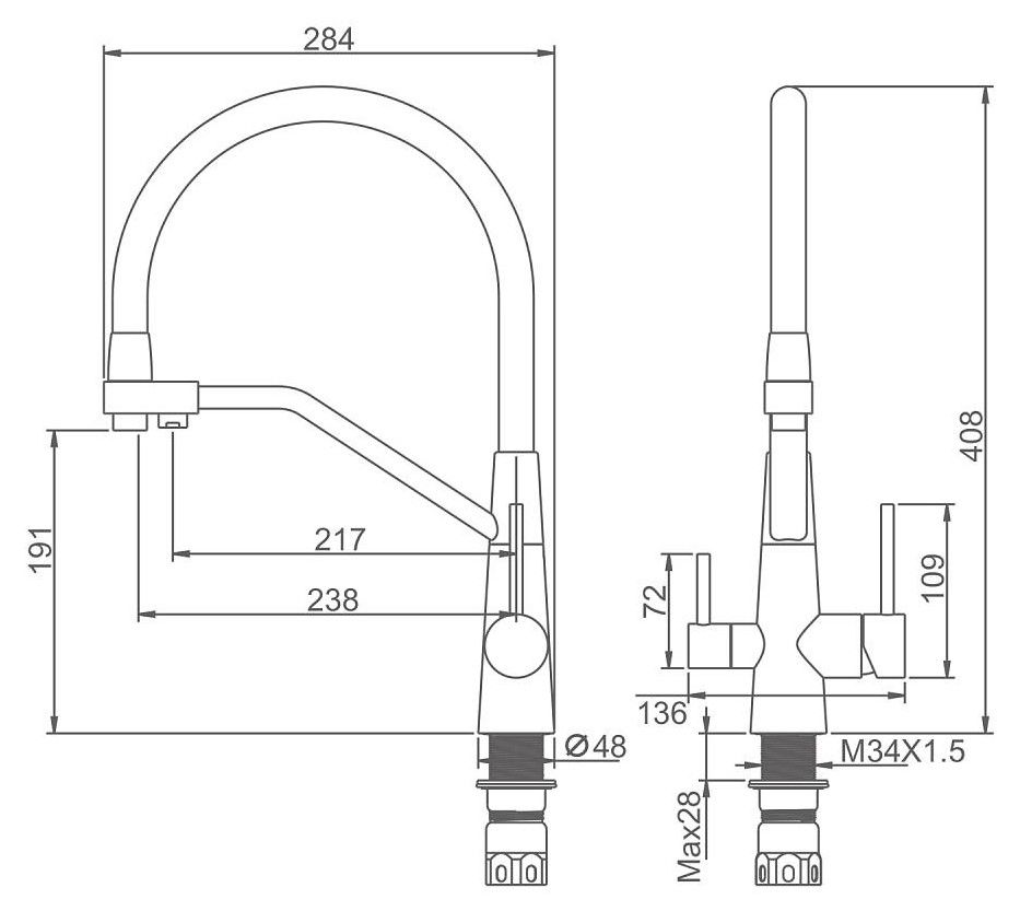 • Высота смесителя:
