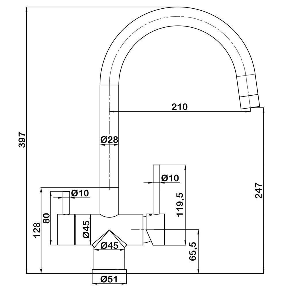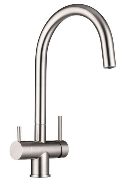 Смеситель для кухни с каналом для подключения фильтраИзлив с поворотом 360 градусов.Изготовлен полностью из пищевой нержавеющей стали (SUS304).Изолированный отдельный канал для фильтрованной воды.Керамический картридж Sedal.Аэратор Neoperl с выделенным каналом для фильтрованной воды.Гибкая подводка SoftPEX.
