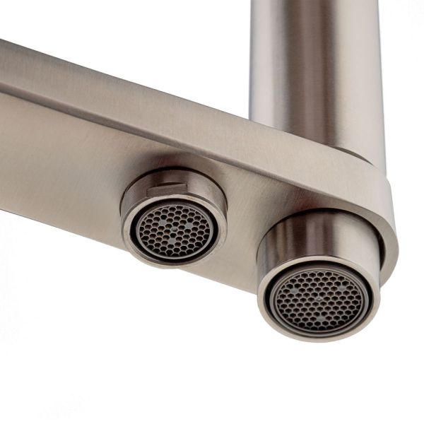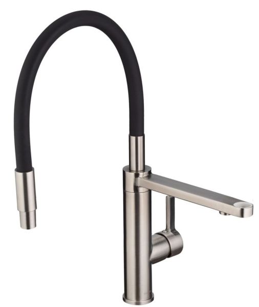 Кухонный смеситель для фильтра с гибким изливом 2 в 1Излив с поворотом 180 градусов.Изготовлен полностью из пищевой нержавеющей стали (SUS 304).Изолированный отдельный канал для фильтрованной воды.Керамический картридж Sedal. Аэратор Neoperl.Гибкая подводка SoftPEX.Управление всеми режимами одной рукояткой.Цвет излива: черный