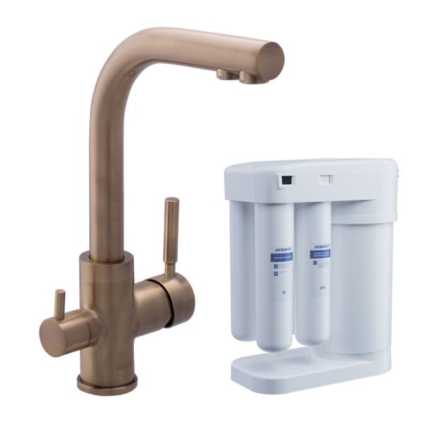 Смеситель для кухни Swedbe Selene Plus K8147M в комплекте с фильтром Аквафор Морион бронза купить