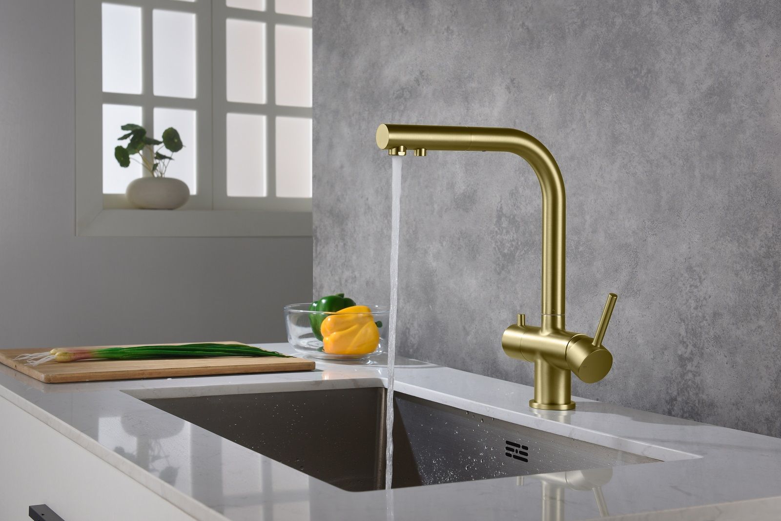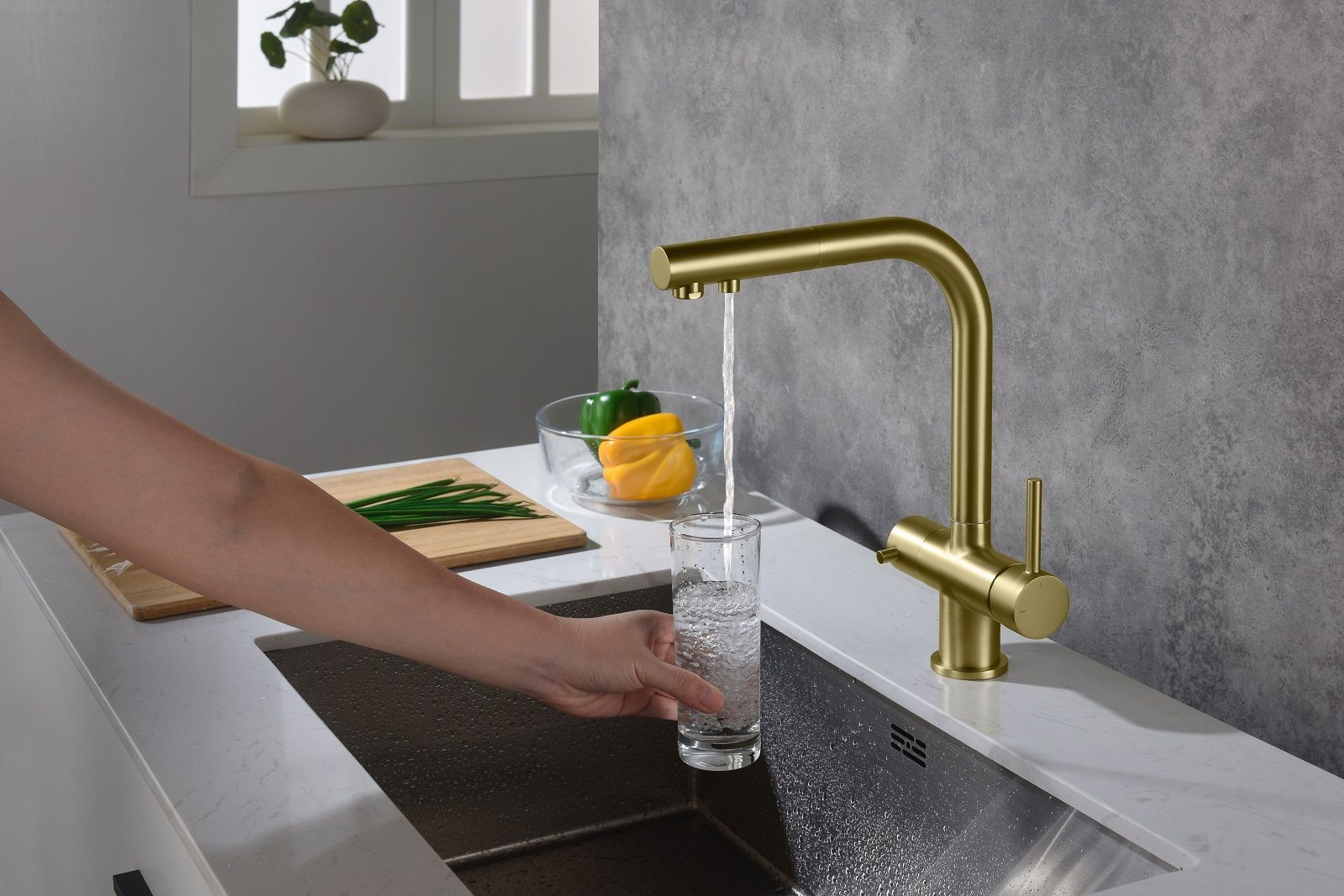 Смеситель для кухни Timo Saona с выдвижной лейкой золото матовое 2356/17FL купить