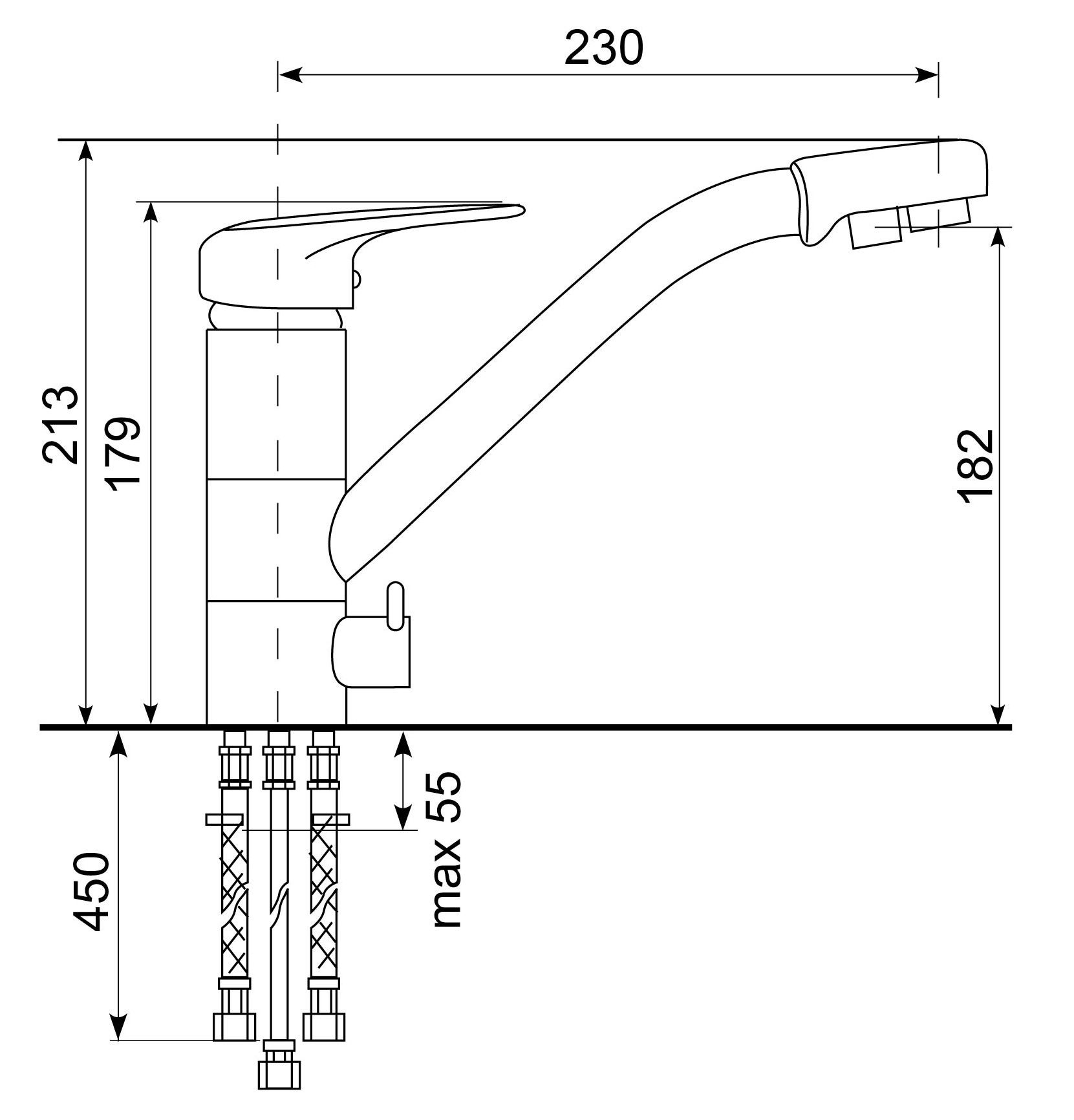 • Высота смесителя: