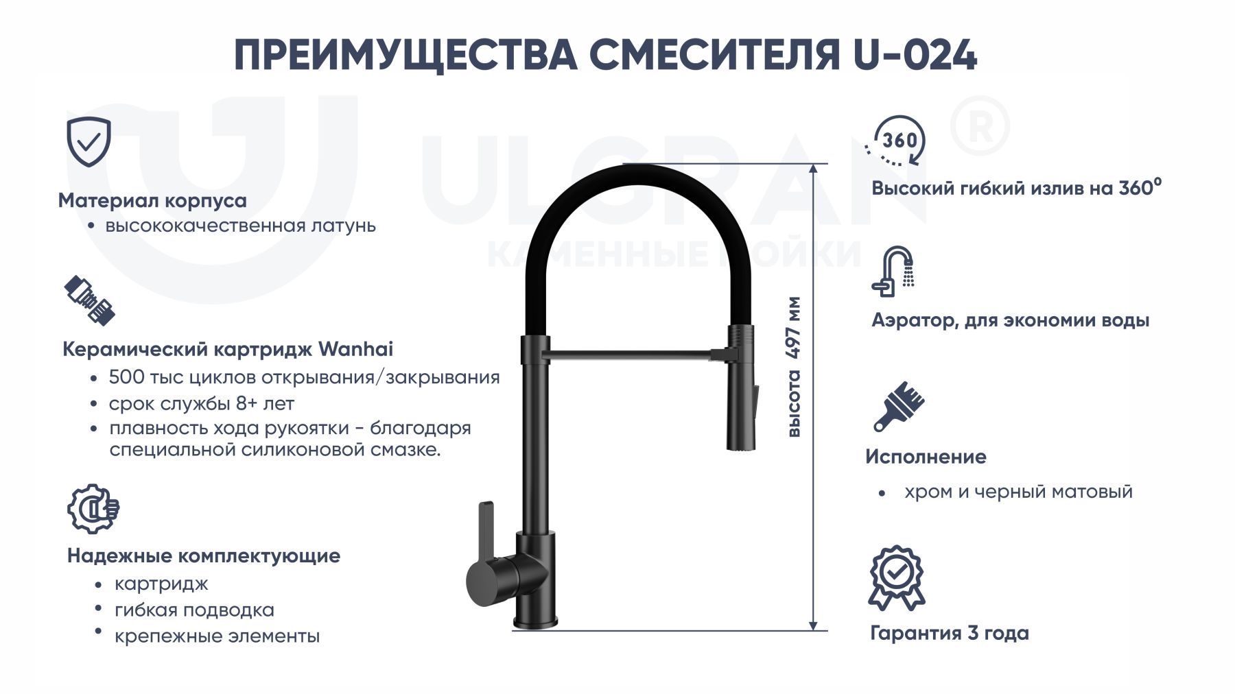 • Надежность – срок службы смесителей ULGRAN более 10 лет