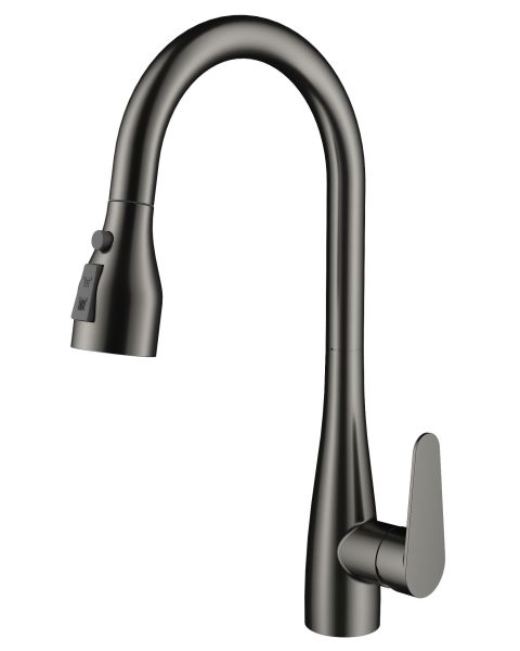 Смеситель для кухни Wonzon & Woghand WW-121E201B-BGG с выдвижным изливом тёмный графит