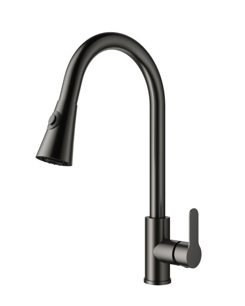 Смеситель для кухни Wonzon & Woghand WW-121E201L-BGG с выдвижным изливом тёмный графит купить
