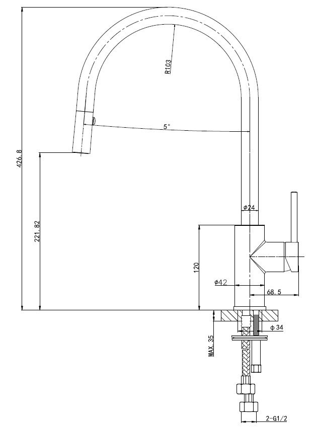Смеситель для кухни Wonzon & Woghand WW-422902-CR с выдвижным изливом хром