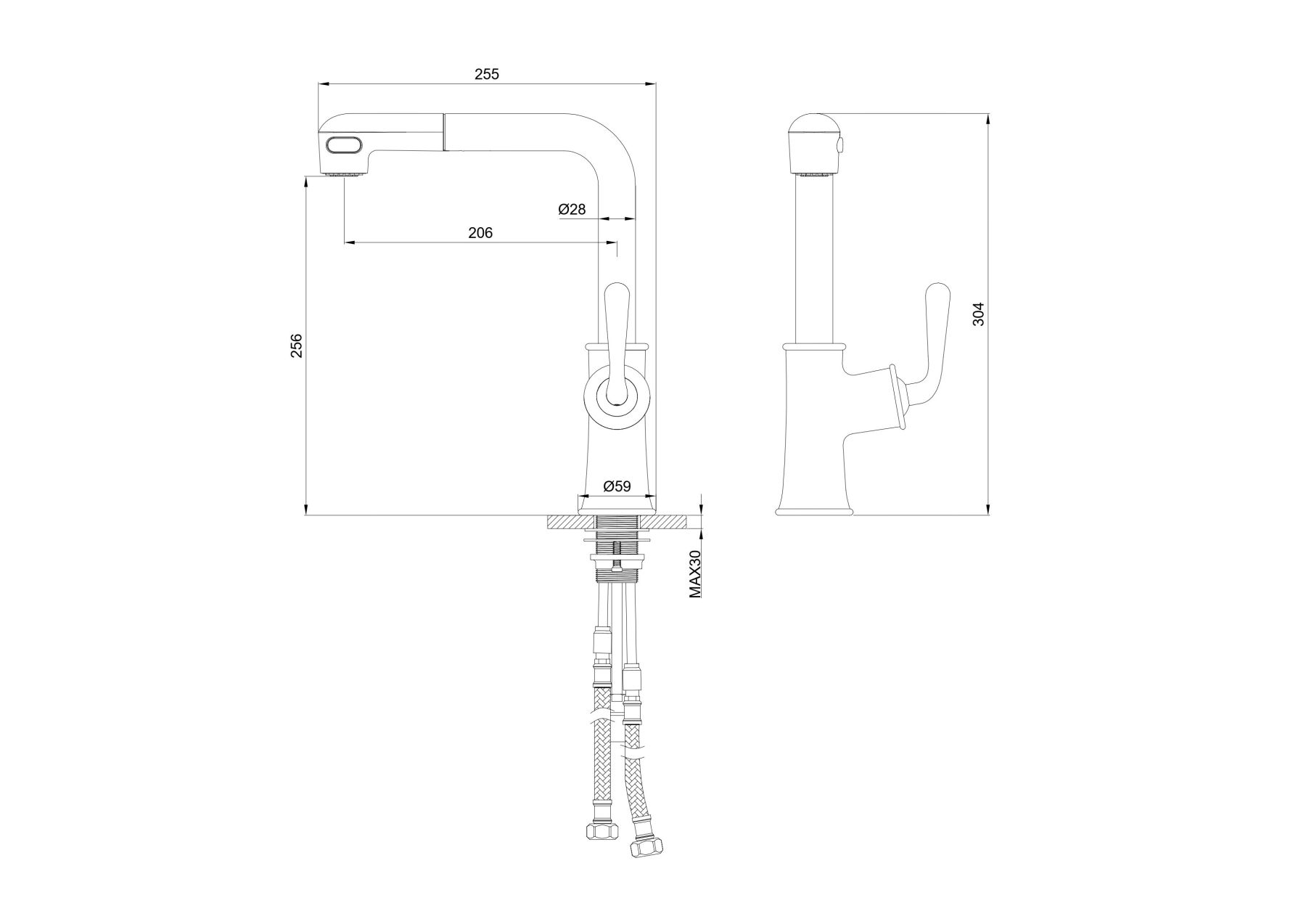 Смеситель для кухни с выдвижным изливом WONZON & WOGHAND, Черный матовый (WW-88439008A-MB)