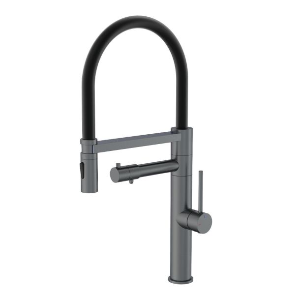 Смеситель для кухни Wonzon & Woghand WW-88458007-BGM с гибким изливом и подключением фильтра тёмный графит