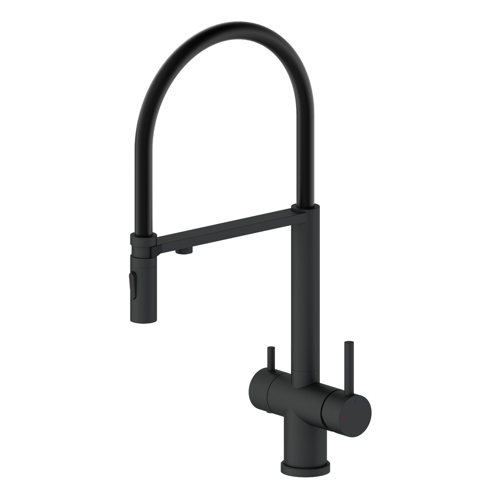 Смеситель для кухни с гибким изливом и подключением фильтра WONZON & WOGHAND, Черный матовый (WW-88458009-MB)
