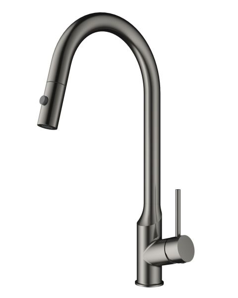 Смеситель для кухни Wonzon & Woghand WW-A21252-BGG с выдвижным изливом тёмный графит