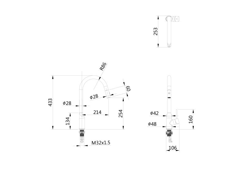 Смеситель для кухни с выдвижным изливом WONZON & WOGHAND, Черный матовый (WW-A21252-MB)