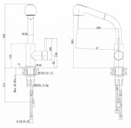 • Высота смесителя: