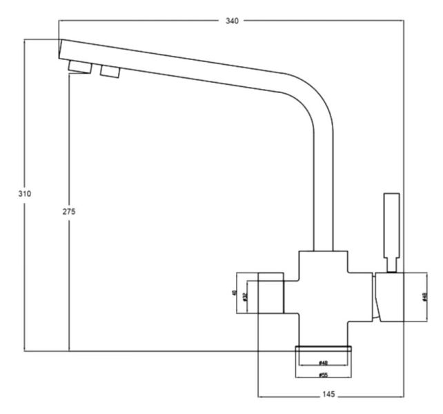 • Высота смесителя: