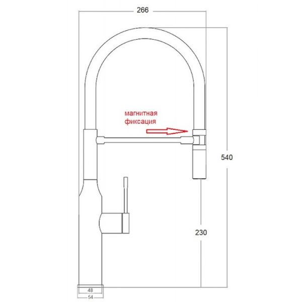 Главой особенностью данного смесителя является надёжная фиксация: крепление гибкого излива с помощью магнитного держателя. Надежный механизм быстро зафиксирует излив стоит только поднести его к держателю.Сам гибкий излив из силикона, что обеспечивает оптимальный диапазон движения шланга, благодаря чему можно без труда мыть габаритную посуду либо наполнять высокие емкости, находящиеся на столешнице или плите.Особенности:
