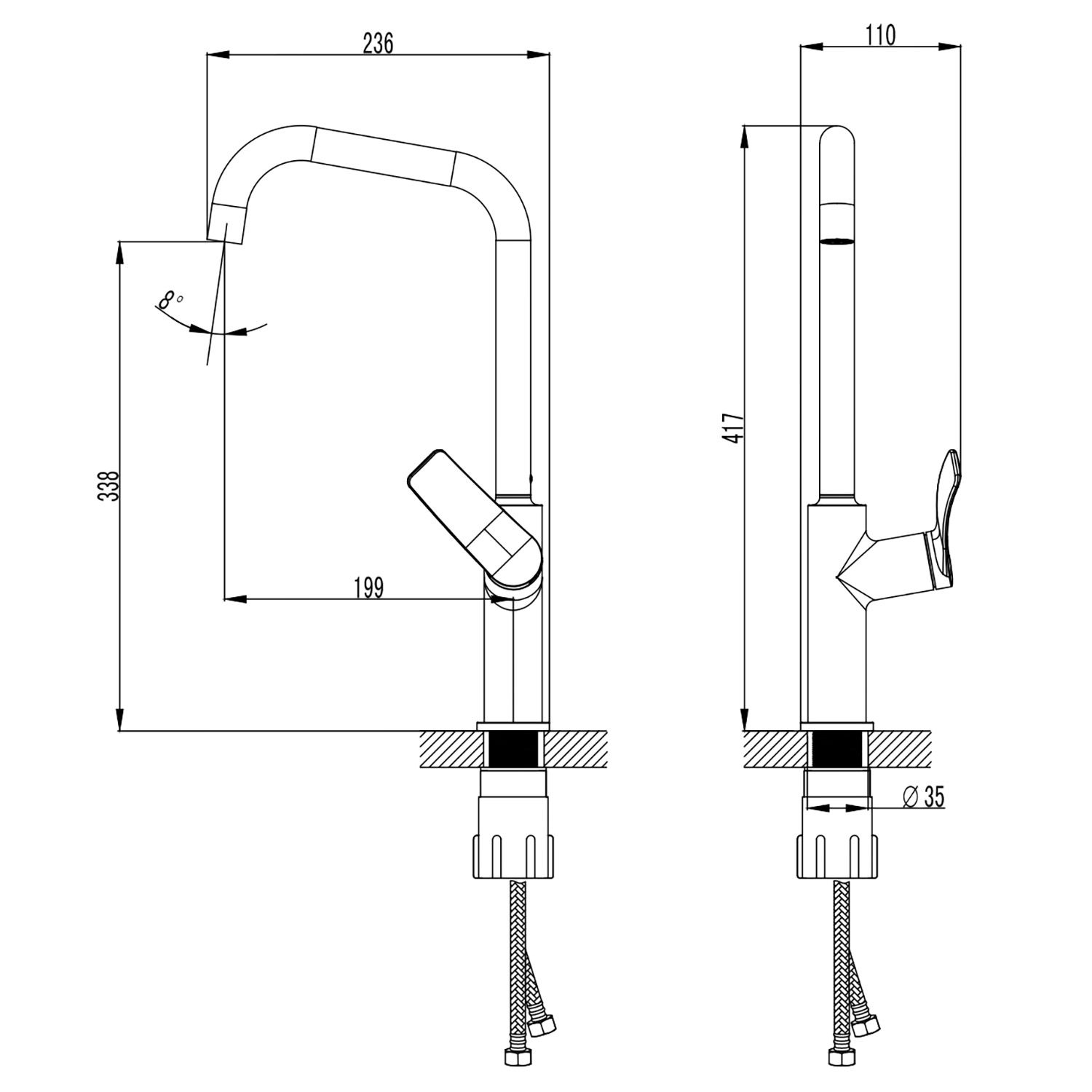 • Вращение излива поворотный