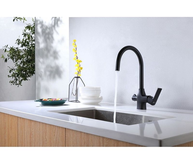 Однорычажный смеситель для кухни Lemark Ursus LM7261BL с подключением к фильтру с питьевой водой.Технические данные:Цвет: черный.