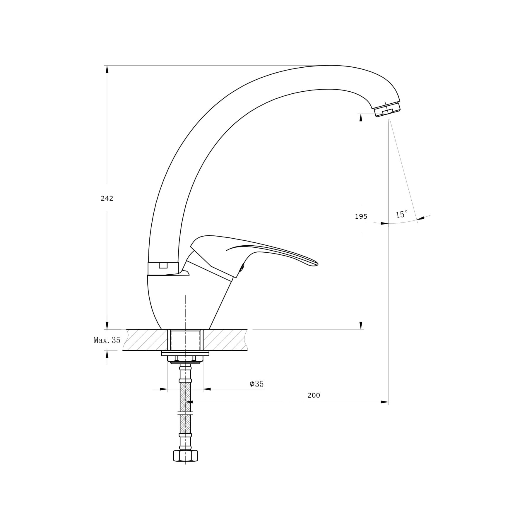Смеситель для кухни с поворотным изливом RUSH арт.CO4240-22 из коллекции Corsica c металлической ручкой имеет рычажное управление. В смеситель установлен картридж D-40 (RSH202) с керамическими пластинами. Высота смесителя 251 мм. Излив поворотный 360гр, 200 мм. Высота излива до аэратора 205 мм. Аэратор изготовлен из пластика с нержавеющим корпусом, угол наклона аэратора -15 гр. В комплекте гибкая подводка с латунными гайками 35см - 2 шт, присоединительная гайка S-32(34)мм, втулка-31мм, фум-лента, индивидуальный пакет, паспорт, гарантийный талон.