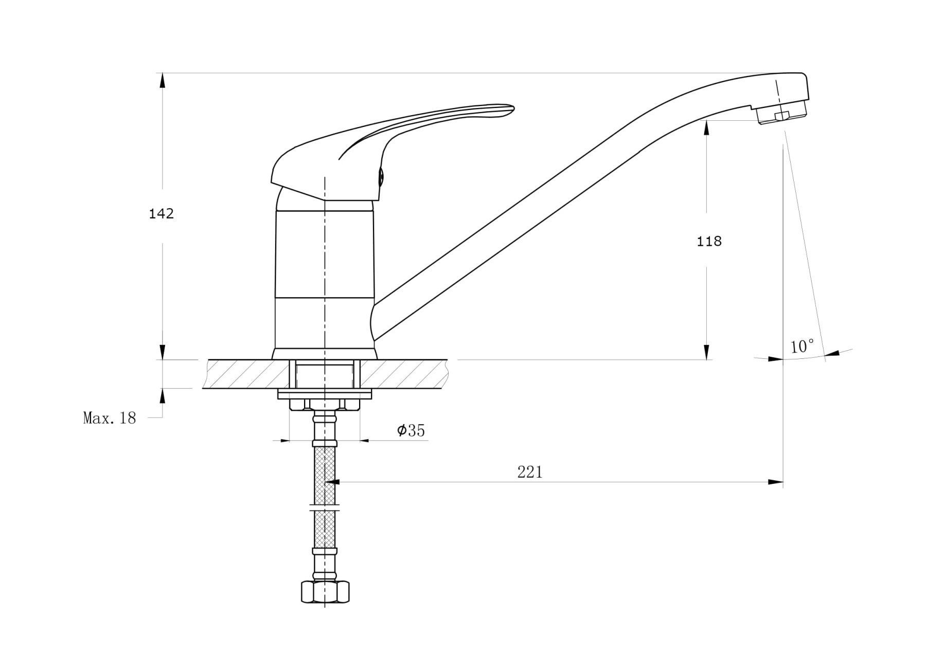 • Высота смесителя: