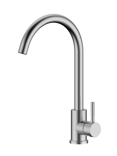 Смеситель для кухни с высоким поворотным изливом RUSH Melos арт. SUS1101-22 с металлической ручкой изготовлен из нержавеющей стали SUS304 и имеет рычажное управление. В смеситель установлен картридж D-35 с керамическими пластинами. Высота смесителя 356мм. Излив поворотный 184мм. Высота излива до аэратора 255мм. Аэратор изготовлен из пластика с нержавеющим корпусом, угол наклона аэратора- 7 гр. В комплекте гибкая подводка с гайками 40 см - 2шт, универсальная присоединительная группа, фум-лента, индивидуальный пакет, паспорт, гарантийный талон.