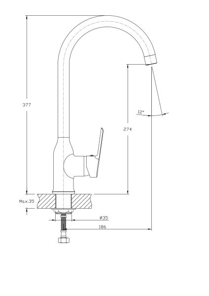 Смеситель для кухни с поворотным изливом RUSH Victori арт.VI7135-23 c металлической ручкой имеет рычажное управление. В смеситель установлен картридж D-35 (RSH102) с керамическими пластинами. Высота смесителя 377 мм. Излив поворотный 360гр, 186 мм. Высота излива до аэратора 274 мм. Аэратор изготовлен из пластика с нержавеющим корпусом, угол наклона аэратора -12 гр. В комплекте гибкая подводка с латунными гайками 35см - 2 шт, присоединительная гайка S-32(34)мм, втулка-31мм, фум-лента, индивидуальный пакет, паспорт, гарантийный талон.