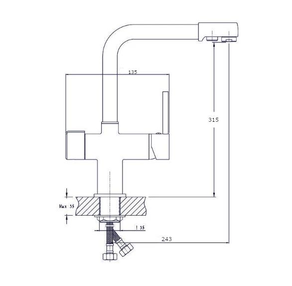 • Высота смесителя: