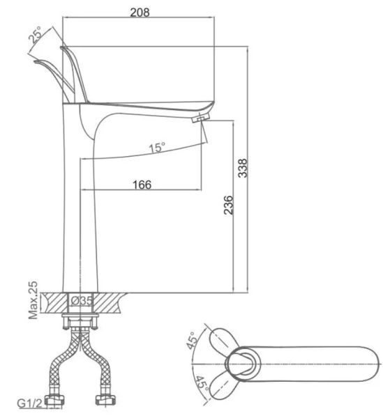 Высота смесителя:33.8
