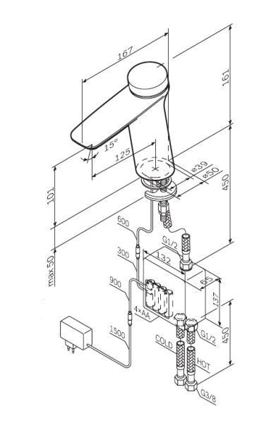 • Высота смесителя: