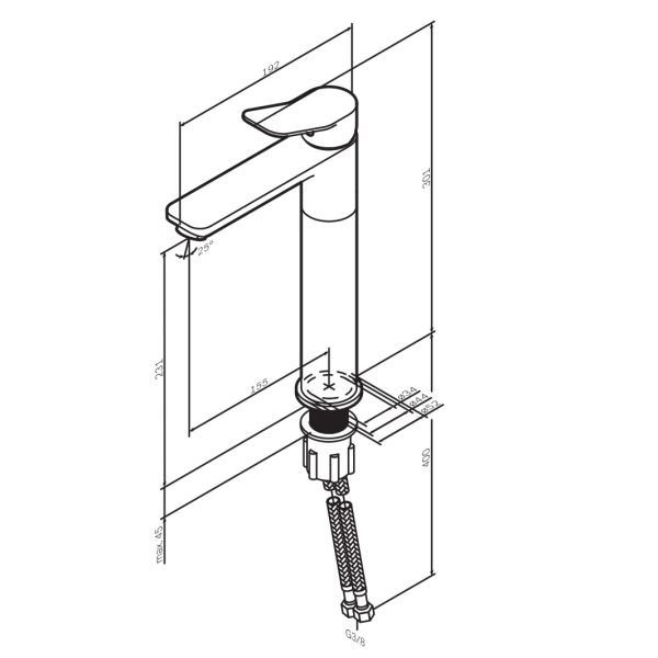 Идеальная геометрия, разработанная по стандарту SA (Smart Angle) – математически выверенное соотношение высоты смесителя, длины излива и наклона корпуса для удобного использования на раковине размером от 50 до 120 см.