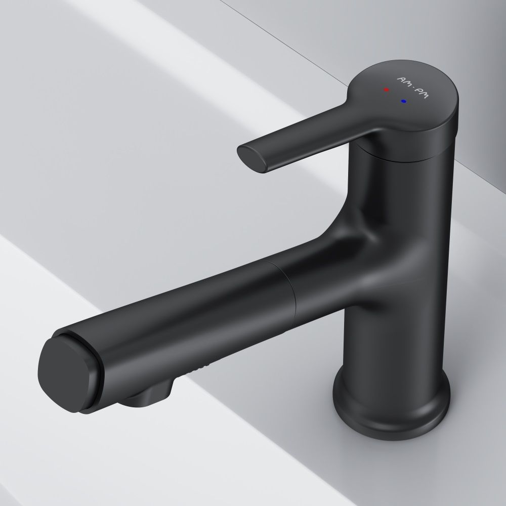 Смеситель для раковины AM.PM X-Joy S F85B02922 черныйСмеситель для раковины с выдвижной лейкой. Цвет-хром. Два режима вытяжного излива и удобное переключение одним нажатием для облегчения решения ежедневных бытовых задач. В комплекте поставки: смеситель, подводка, крепеж, инструкция