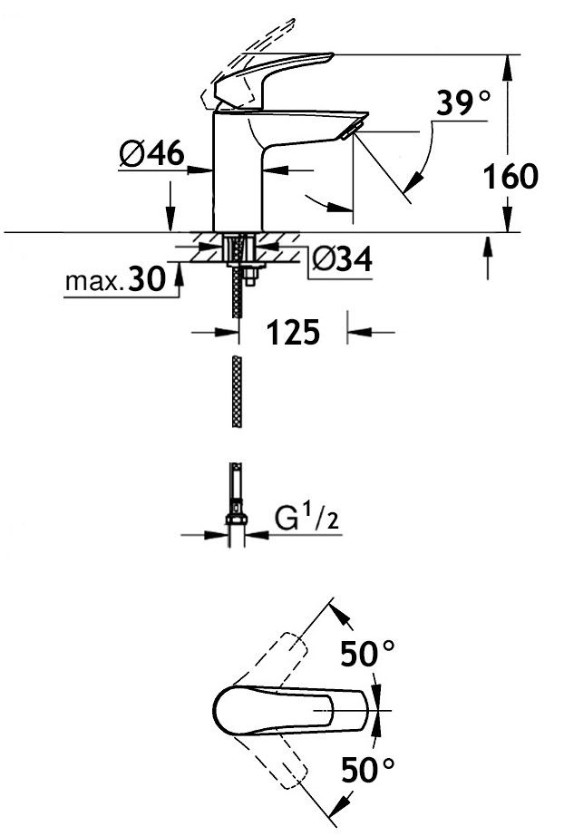литой рычагмонтаж на одно отверстиеаэратор M 24 x 1керамический картридж с ограничителем горячей водыгибкая подводка G 1/2система быстрого монтажаИталия10 лет гарантии