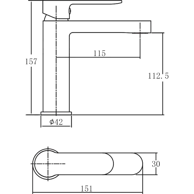 • Высота смесителя: