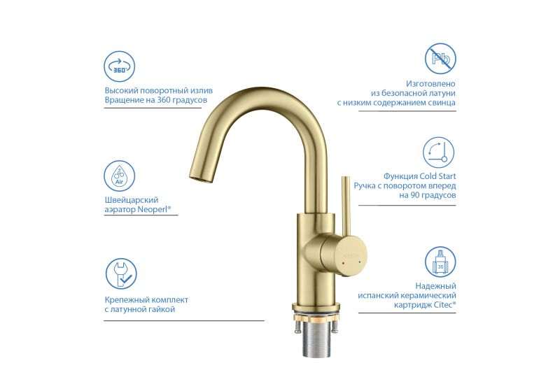 Высота излива (см): 13,2Длина излива (см): 12,95Аэратор: Neoperl, ШвейцарияГибкая подводка в комплектеДлина гибкой подводки (см): 60Тип резьбового соединения: M10Стандарт подводки: 1/2"Вращение излива: поворотныйТип управления: рычажныйНазначение: для раковиныКоличество монтажных отверстий: 1 отверстиеПодключение к системе водоснабжения: гибкая подводкаМеханизм: керамический картридж Citec, ИспанияДиаметр картриджа (мм): 35Картридж холодного запуска Ecostart (ColdStart): да