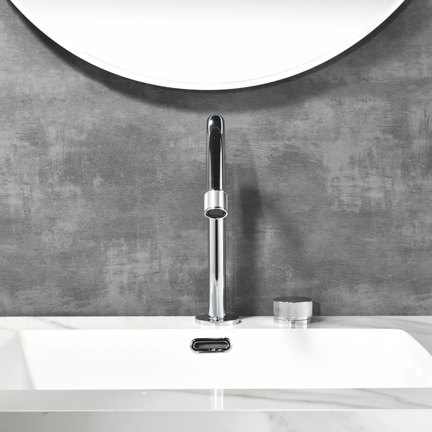 Двухпозиционный смеситель для раковины датского производителя Black&White в цвете глянцевый хром. Изделие выполнено из сантехнической латуни – безопасного для здоровья сплава не подверженного коррозии. Настройка температуры выведена на ручку цилиндрической формы, в которую установлен керамический картридж, монтаж  осуществляется  сбоку от излива. Настройка давления воды выведена на сам излив  в виде кольца с насечками в зоне аэратора. Продукт выполнен в минималистичном стиле и гармонично впишется в Эко интерьеры ванных комнат,а высокий излив удобен в практическом использовании.