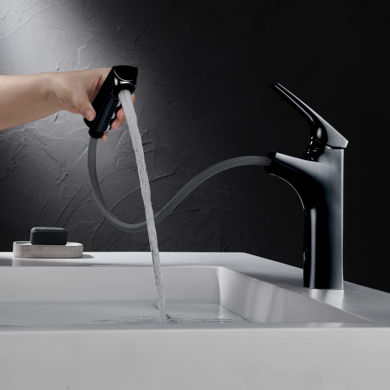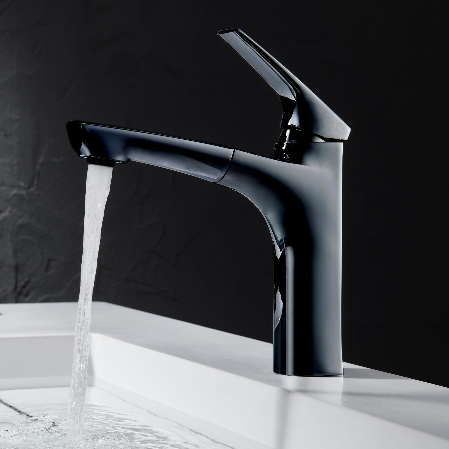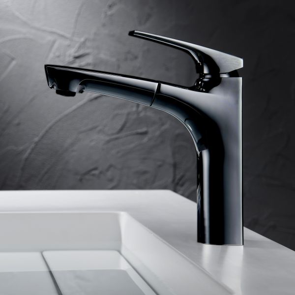 Смеситель для раковины Black&White Universe 7901B с выдвижным изливом чёрный матовый купить