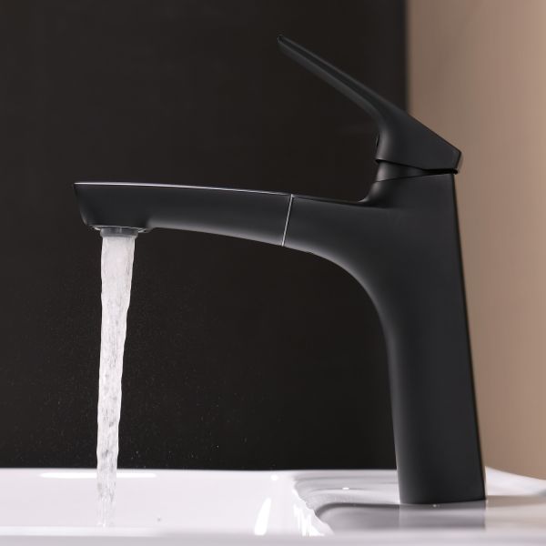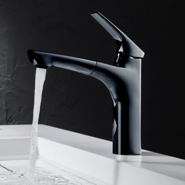 Смеситель для раковины Black&White Universe 7901B с выдвижным изливом чёрный матовый