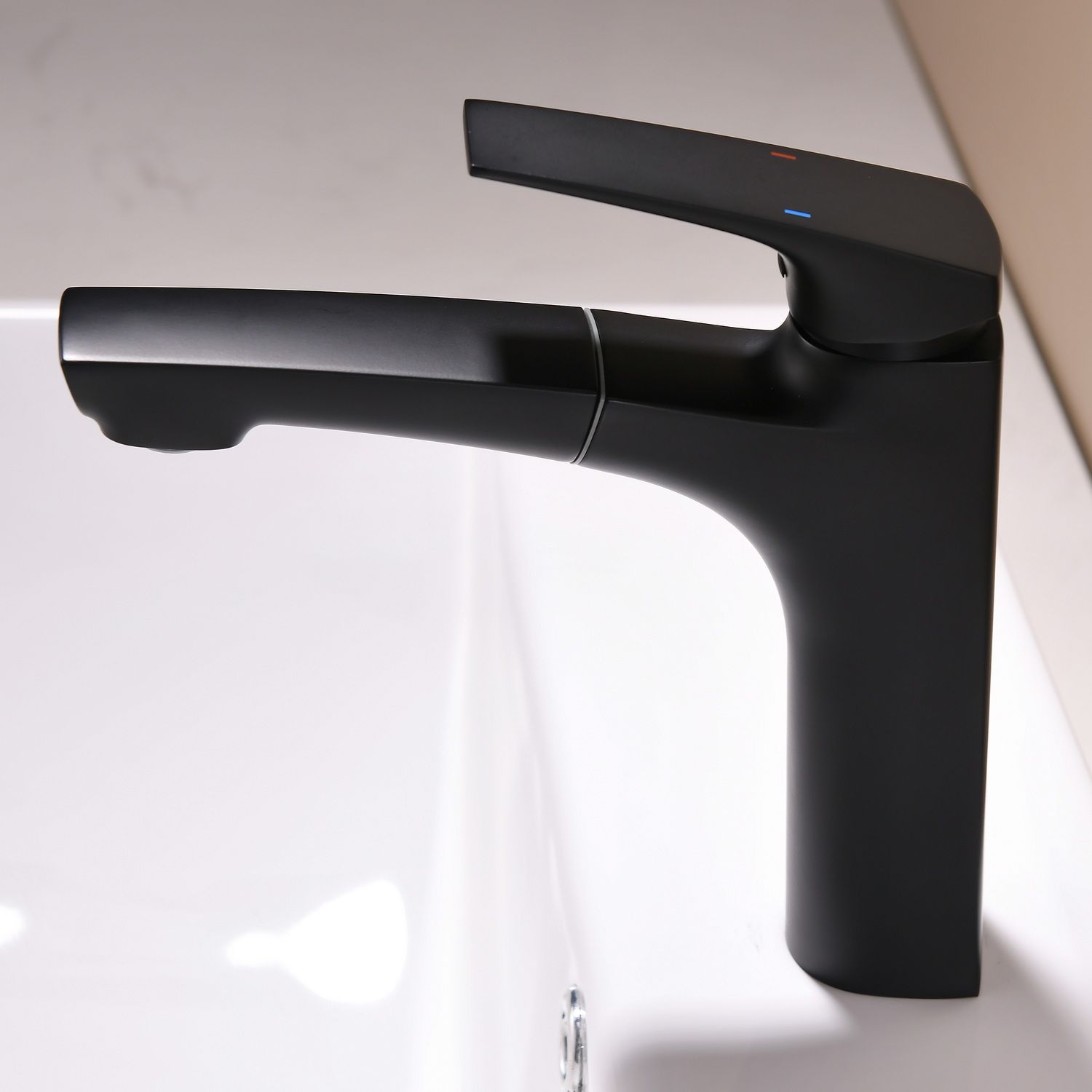 Смеситель для раковины датского производителя Black&White в черном матовом цвете. Материал корпуса выполнен в минималистичном стиле и изготавливается из сантехнической латуни.Сплав безопасен для здоровья и не подвержен коррозии весь срок службы изделия. Для управления потоками воды установлен керамический картридж повышенной пропускной способности, установленный сверху корпуса. На изделии имеется вытяжной излив с аэратором для комфортного использования в бытовых нуждах.
