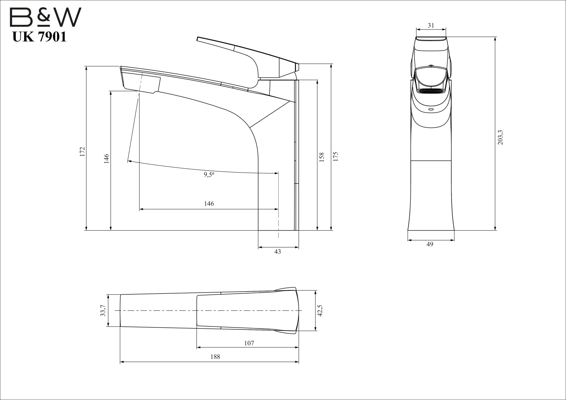 Смеситель для раковины Black&White Universe 7901MG с выдвижным изливом оружейная сталь купить