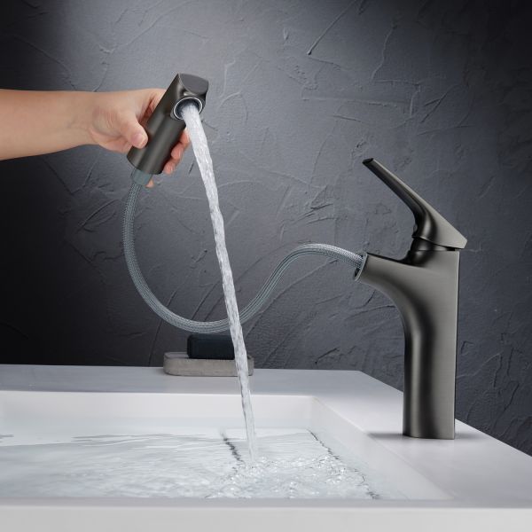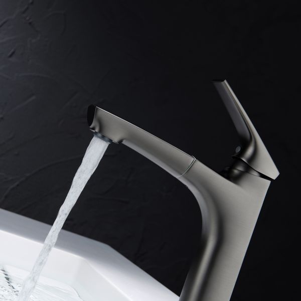 Смеситель для раковины Black&White Universe 7901MG с выдвижным изливом оружейная сталь