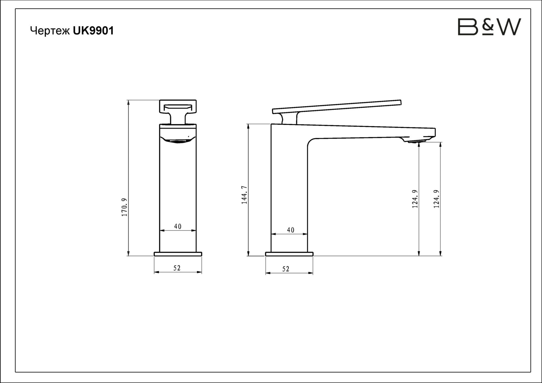 Смеситель для раковины Black&White Universe 9901MG оружейная сталь