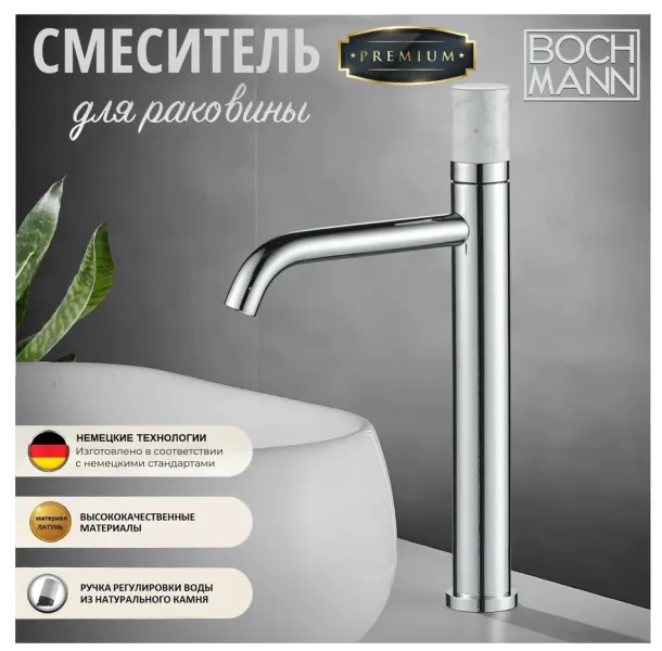 Смеситель для раковины Boch Mann Stella Stone XL BM9970 с ручкой из натурального камня хром купить