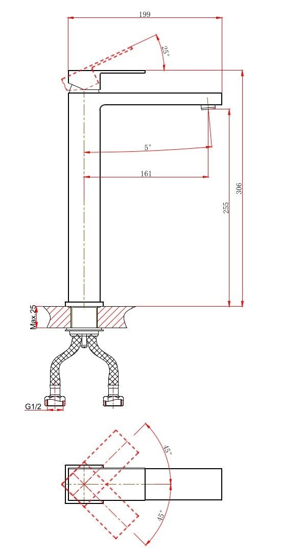 • Высота смесителя: