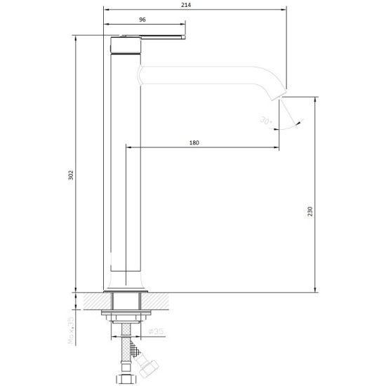 • Высота смесителя: